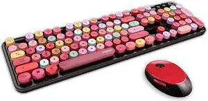 Gemdeck Wireless Mini Keyboard and Mouse Combo Vintage Round Keycaps RED/BLACK