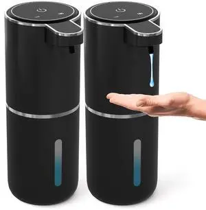 2 Pack Automatic Soap Dispenser Touchless,Liquid Hand Soap Dispenser 12.8oz USB 4levels Adjustable Dispenser Electric Wall Mounted Smart for Bathroom and Kitchen Dish SoapEasy for Toddlers(Black)