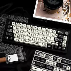 Black and white keycaps, PBT heat transfer keycaps, customized mechanical keyboard keycaps, personalized keycaps (only keycaps)