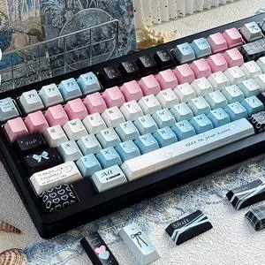 High aesthetic quality cute style mechanical keyboard keycaps with a cross shaft and blue axis. 61-key, 68-key, 98-key (only keycaps)
