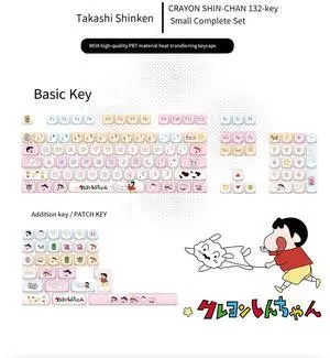 Crayon Shin-chan themed keycaps, cute mechanical keyboard with cross-axis keycaps, MOA height, PBT material, full five-sided heat transfer printing. (Only the keycaps) MOA height: 128 keys