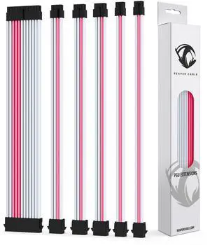 UNIFAS ARGB 24Pin PC PSU Extension Cable,16AWG ATX 24Pin Power Extension,Unified Dual-Tube Design for Clean PC Cable Management,White