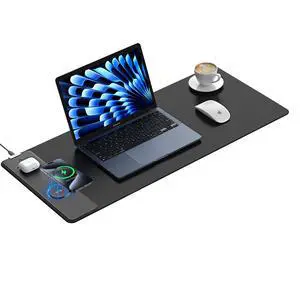 Wireless Charging Mouse Pad, Waterproof Gaming Mousepad with Ultra-Smooth Surface, Non-Slip Base, 31.5"x15.75" XXL Large Desk Pad, Classic Black Computer Desk Mat for MacBook, PC, Laptop