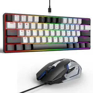 65% Gaming Keyboard and Mouse Combo, RGB Backlit Keyboard + 7200 DPI Gaming Mouse, Ultra-Compact Anti-Ghosting Wired Keyboard and Mouse for PC Laptop Gamer
