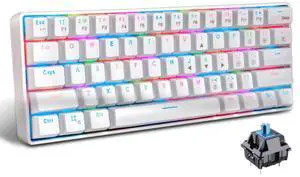 surmen 65% Mechanical Gaming Keyboard with Linear Red Switch, Wired Mini Compact Keyboard 60 Percent Backlit for Laptop Desktop PC Gamers68 White-Ice Blue