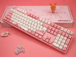 Varmilo Cherry Blossom Mechanical Keyboard 108 keys Sakura Wired Gaming Keyboard Anti Ghosting V-Silk PBT keycaps, support Windows series (MAC OS Supports Normal Typing Office, not fully compatible)