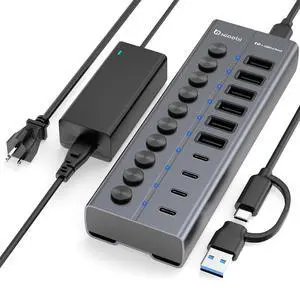 Powered USB Hub,15 in 1 USB 3.2 Hub, USB C Hub with PD 100W, USB C 45W Charging,10Gbps Data, 7 USB A 3.0 Ports, 65W Power Adapter and 3.3FT Cable, Aluminum USB Hub for PC,Laptop,MacBook,iPadBrand: AnkerSeries: C1 GitfosMax Devices Supported: 127Ports: 1 x USB 3.0, 3 x USB 2.0Model #: 598576981359
