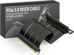 PCIE 5.0 Riser Cable, PCIE 5.0 X16 GPU Extender Cable with Unique Cable Protector, 128Gbps Transfer Rate, for PC Cases, AI Programs, Servers, Extreme Gaming