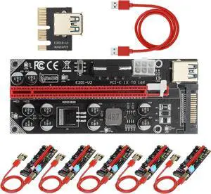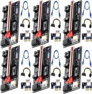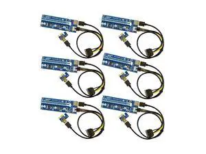 GPU Riser Adapter Card PCIe 1x to 16x for Bitcoin Litecoin ETH Mining, PCIe 6pin/Molex 4pin/SATA 15pin Interface, Linux Compatible, Desktop, 6 Pack
