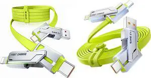 SHEZI 2 Pack Cable Bundle, 4-in-1 5FT 240W Thicker Silicone USB C Cable(Green) with 4-in-1 5FT 60W Thicker Silicone USB C Cable(Green) Bundle