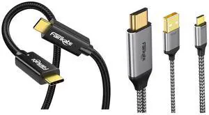 fairikabe HDMI to USB C Monitor Cable 6.6ft 4K60Hz, USB C to USB C Video Cable 1.5m 20GB Data Transfer 100W PD
