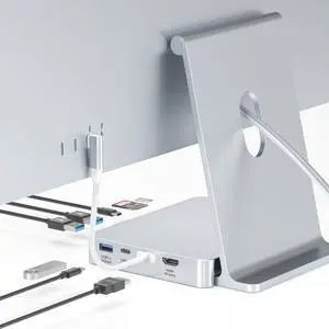 Yoidesu Aluminum Alloy Stand Dock Hub for Mini M4 with Dual M.2 SSD Slots 10Gbps USB A Ports 40Gbps Bandwidth PCIe 4.0 Storage Memory Card Readers (US Plug)