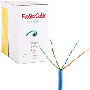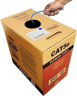 Cat5e CMP 1000 Ft Plenum Cable UTP 24 AWG Solid Fire Shielded CMP- Rated Twisted Pair 350MHz LAN Network Wire IP POE NVR Security System Bulk Ethernet Cable Blue