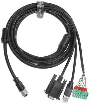 20m/65.6ft M12 A-Code 17-Pin Female to RJ45 & DB9 Cable - Power + Data Ethernet for Hikrobot ID2000/3000 Barcode Readers & SC2000/3000 Vision Sensors - Industrial Sensor Interface Cable