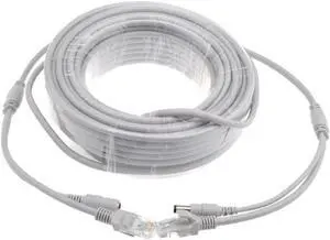 5M/10M/15M/20M/30M Optional Gray CAT5/CAT-5e Ethernet Cable RJ45+DC Power CCTV Network LAN Cable for System IP Camera(30M)
