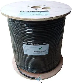 CAT6 Direct Burial Ethernet Cable 23AWG Solid CCA UTP for Network, Waterproof HDPE Insulation, Polyethylene (PE) Jacket foOutdoor Installations, LAN Cable (1000ft-Black)