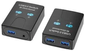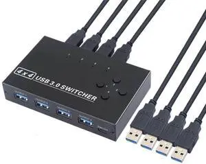 USB 3.0 Switch 4 Computers Sharing USB Peripherals, 4 Port USB Switcher Sharing Mouse Keyboard Scanner Printer, with 3.5mm Headset Jack Audio Out, Includes 4 USB 3.0 Cables and Remote
