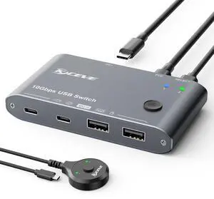10Gbps USB C Switch 2 Laptops 2 in 4 Out USB 3.2 Switcher 2 Computers Share Keyboard Mouse, Printer, Camera, Headphone, 10Gbps Data Power Cable & Desktop Controller Included