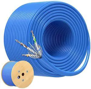 Syston Cable Technology Cat 6E Ethernet Network Cable -Blue 250FT, 600MHz 23AWG Solid Bare Copper Wire Outdoor/Indoor, Bulk No Ends 100/250/500/1000 Ft Available, Heat Resistant Plenum Rated - CMP