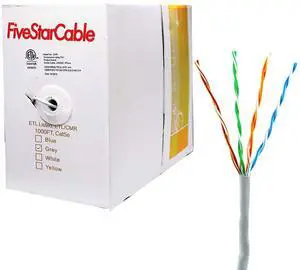 Cat5e 1000 Ft. CMR Riser Rated Solid Bare Copper Conductor UTP Ethernet High Speed POE IP Security Camera System Twisted Paired PVC Cable Grey