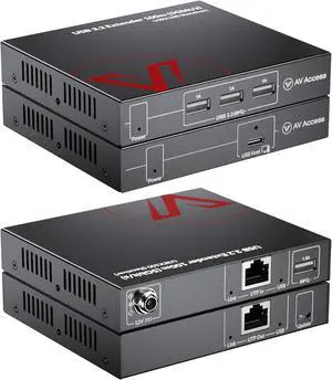 AV Access HDbaseT USB 3.2 Extender Over Ethernet Cat6a/7 100M/330FT, 4 USB 3.2 Ports 5Gbps for Long Distance Extension, 6.6FT USB C to A Cable Included, Plug&Play, Supports All Operating System, PoC