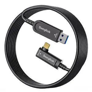Fiber Optic USB C Cable Right Angle(50ft),10Gbps High Speed Data Transfer USB A to Type C Cable,Compatible with Cameras,Webcams,VR,AR for Collaborative Meetings,Smart Classroom,Data Center