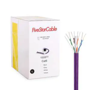 Cat6 CMR 1000 Ft Riser-Rated Solid Bare Copper Cable 4 Twisted Pair UTP Bulk Ethernet Router Network POE Security Camera Cable LAN Cable PVC Purple