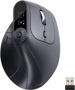 SANWA Multi Device Ergonomic Vertical Mouse, Silent Click, 5 Programmable Buttons, 2 Bluetooth 5.0 + 2.4G Wireless Ergo Mice for Medium Large Hands, Compatible with Windows, Mac OS, Laptop, PC, Black