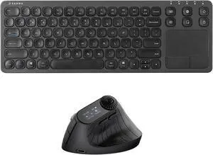 SANWA Ergonomic Mouse with LED Screen + 3-Device Touchpad Keyboard Set, Vertical Mice Knob Control, 5 Programmable Buttons, Bluetooth Trackpad, Compatible with Mac, Windows, Android, iOS, PC, Black