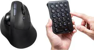SANWA 190BK 3-Device Wireless Trackball Mouse + Bluetooth Numeric Keypad Set, Programmable Silent Buttons Roller Mouse, 22-Key Portable Financial Accounting Numpad, Compatible with Mac, Laptop, PC, Wi
