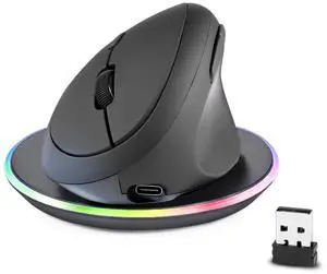 719RX Wireless 2.4G Rechargeable Ergonomic Mouse - Duo Wired and Cordless Charging Feature - Wireless Charger Included - Black