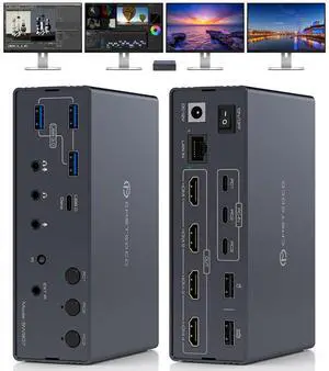 USB C KVM Switch Docking Station 3 Computers 4 Monitors for M1 M2 M3 M4 with Displaylink Technology,4K60Hz HDMI KVM Multi-Monitor Extended/Mirrored Display Out for Windows Mac