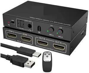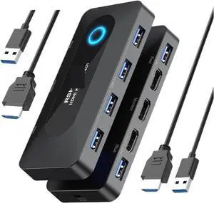 MT-VIKI KVM Switch HDMI 2 Port Boxes, 4K@30Hz USB HDMI KVM Console for 2 PCs Share 1 HD Monitor and Keyboard Mouse with 2 USB Cables + Desktop Selector
