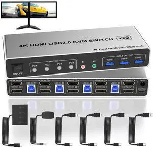 ![IHDAPP KVM Switch 4 Monitors 2 Computers 8K@60Hz/4K@120Hz, HDMI DP KVM Switches for 2 PC Sharing Quad Monitor & Keyboard Mouse with Power Adapter, Wired Controller and USB Cables, [Input 3 DP + 1HD] IHDAPP KVM Switch 4 Monitors 2 Computers 8K@60Hz/4K@120Hz, HDMI DP KVM Switches for 2 PC Sharing Quad Monitor & Keyboard Mouse with Power Adapter, Wired Controller and USB Cables, [Input 3 DP + 1HD]](https://c1.neweggimages.com/productimage/nb300/AMYES25112804MAED98.jpg)