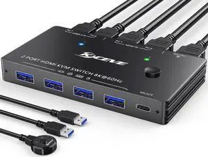 Video Resolution: USB3.0 dual monitor KVM switch supports resolution up to 8K@60Hz/[email protected] dual monitor KVM HDMI2.1+DP1.4 switch supports 2 computers that with different resolutions, such as 1 computer is 4K@60Hz, the other is 4K@30Hz, 1440P@60HZ, 3D 1080P@60HZ or lower resolution.