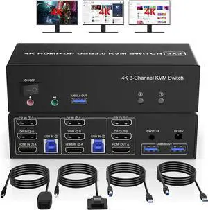 8K 2DP+HDMI KVM Switch 3 Monitors 2 Computers Support 8K@60Hz 4K@120Hz Displayport HDMI KVM Switcher PC Display Share 3 Monitors and 4 USB 3.0 Support Copy and Extend Mode