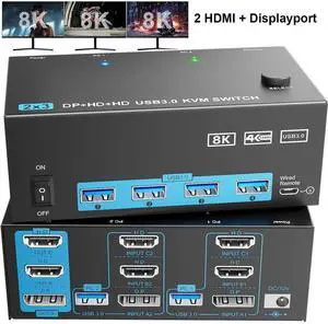 ![USB 3.0 KVM Switch 3 PC 3 Monitors, [2 Displayport + HDMI] Triple Monitors KVM Switch, 8K@ 60Hz KVM Switch 4K@144Hz, KVM Switch Displayport 1.4 + HDMI 2.1 for 3 PC Share 3 Display and 4 USB 3.0 Device USB 3.0 KVM Switch 3 PC 3 Monitors, [2 Displayport + HDMI] Triple Monitors KVM Switch, 8K@ 60Hz KVM Switch 4K@144Hz, KVM Switch Displayport 1.4 + HDMI 2.1 for 3 PC Share 3 Display and 4 USB 3.0 Device](https://c1.neweggimages.com/productimage/nb300/AMYDS2403040BTPL82A.jpg)