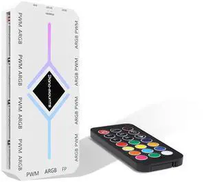 1 to 9 Port PWM & ARGB Magnetic Computer Fan Hub with Remote Control for 5V 3-Pin Addressable RGB PC Case Fans SATA Power Supply White