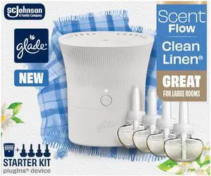 Scent Flow PlugIns Air Freshener, Clean Linen, 1 Device + 4 Refills, 2.61 fl oz