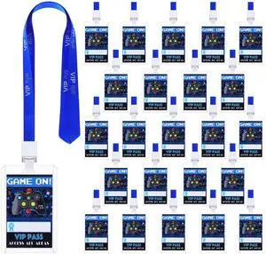 24 Pcs Video Game Party Favors VIP Video Game Lanyard VIP Pass Holder Card Tickets for Birthday Party Supplies