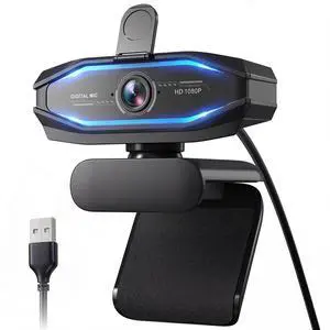 HD 1080P Gaming Webcam with Microphone,Streaming Camera Web Cam with RGB Light,Noise Cancellation, Privacy Cover,Plug and Play,Computer Camera for Desktop/Laptop,Video Calls/Conferencing/Streaming