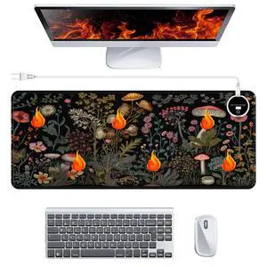 Heated Desk Pad 31.5" x 13", 30° to 55° Multistage Control, 3 Hours Auto Shut-Off, Extended Edition Gaming Mouse Mat, Leather Heated Mouse Pad Heated Desk Mat, Mushroom Party