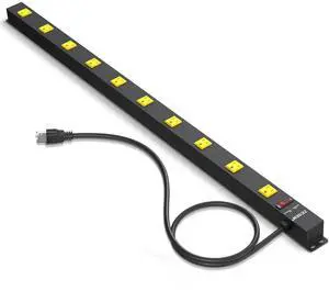 Metal 8 Outlet Mountable Power Strip, Wall Mount Outlet Heavy Duty, Wide Spaced Commercial Shop Power Strip with Switch, 15A 125V 1875W, 6 FT SJT 14AWG Power Cord.(Black)
