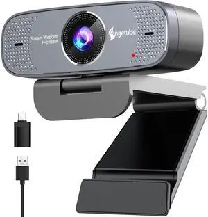 Full HD 1080P Webcam with Noise Cancellation, Privacy Cover, Auto Focus, Wide-Angle Lens, Auto Light Correction, USB 2.0 for Laptop, Desktop, PC, Mac