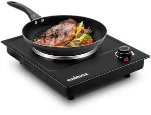 Countertop Double Cast Iron Burner 1800 Watts Electric Hot Plate with Adjustable Temperature 6.1" Cooktop for Dorm, Office, Home, Camp, Compatible for All Cookwares