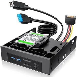 5.25 Front Panel USB Hub, Internal SD/microSD Card Reader for Desktop PC, Gen2x2 20Gbps USB-C Port, Dual 2.5" SSD/HDD Slots, USB3.2 Type-E Key-A & USB3.0 19-Pin Header