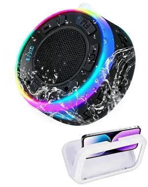 Bluetooth Shower Speakers,Waterproof Bluetooth Speaker with RGB Lights IPX7 Waterproof Wireless Speaker with Suction Cup HD Sound Pairs to Phones,Tablets, for Bathrooms,Outdoor,Party,Beach