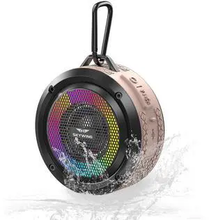 Portable Bluetooth Speaker with vibrant led lights, IPX6 Waterproof, Loud Stereo Sound,Hands-Free Calling/Radio, for Shower, Beach, Outdoors, Over 10 H Playtime, Mini/Small, Suction Cup & Hook