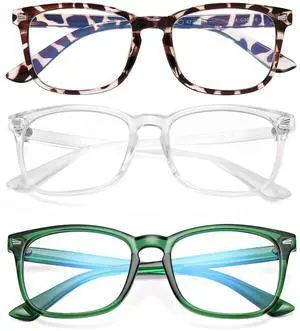 AZorb 3Pack Blue Light Blocking Glasses for Kids TR90 Unbreakable Computer Screen Glasses for Boys & Girls 3 Pack(Leopard+Transparent+Green)
