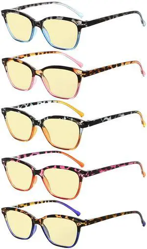 Eyekepper 5 Pack Blue Lens Glasses Women Screen Light Filter Blocking UV Rays Readers for Reading Computer Yellow Tinted +1.50